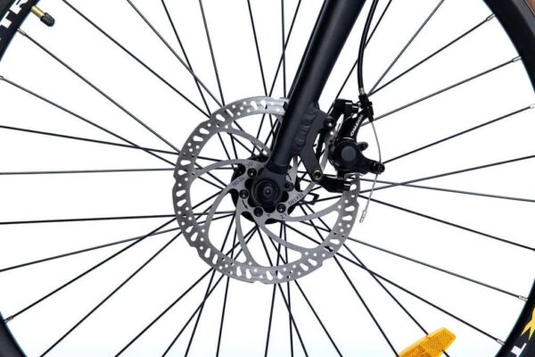 Freins: Pour un freinage puissant et progressif il est équipé de freins à disque TEKTRO (disques de 180mm à l’avant et 160mm à l’arrière). Ils vous permettent de mieux contrôler la puissance de freinage que vous désirez appliquer et de ne bloquer la roue que lorsque vous le souhaitez.