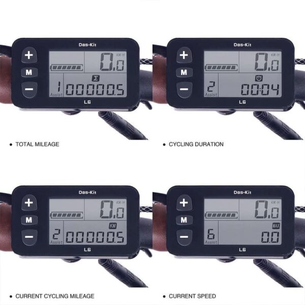 L’écran LCD Das-Kit C7 L’écran inclus avec le vélo électrique offre 6 niveaux d’assistance électrique du moteur, ainsi que diverses informations sur votre trajet.
