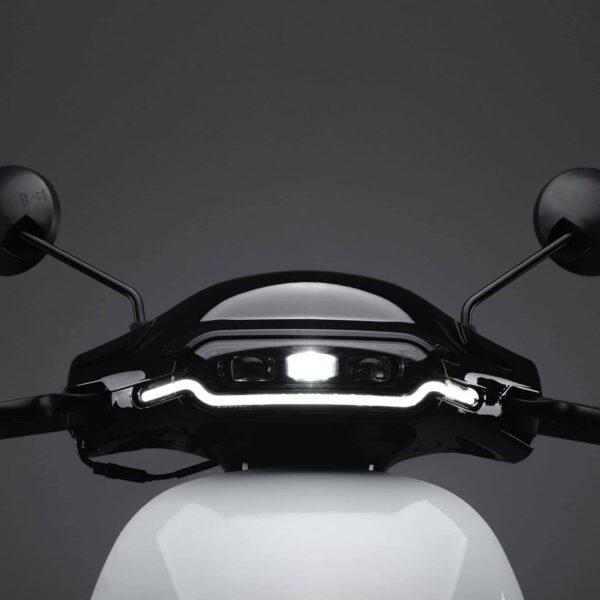 Le scooter est également équipé d’un éclairage LED complet, incluant des phares puissants, des feux arrière et des clignotants. Cela garantit une excellente visibilité, de jour comme de nuit, et contribue à la sécurité des usagers de la route.