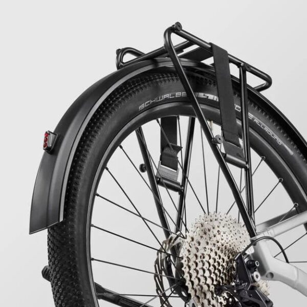 Le Canyon Precede: ON 5 est équipé d’un porte-bagages robuste et de garde-boue élégants. Le porte-bagages permet de transporter des charges, parfait pour le quotidien. Les garde-boue protègent des éclaboussures, rendant le vélo adapté aux trajets par tous les temps.