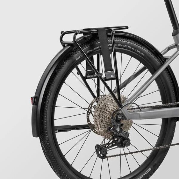 Le porte-bagages du Canyon Precede 6 est conçu pour transporter des charges légères à modérées. Sa conception robuste permet de transporter des sacs ou des paniers, un atout pour les courses en ville. Le vélo dispose également d’accessoires intégrés, comme des garde-boues, pour une utilisation en toutes conditions.