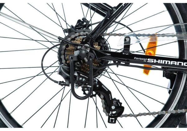 Le Moma Bikes E-Bike 28″ est équipé d’un dérailleur Shimano 7 vitesses.
