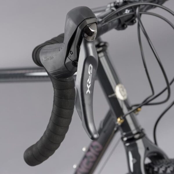 Évidemment, l’équipement est au niveau. On retrouve notamment le groupe Shimano GRX spécial Gravel, avec une transmission 2 x 11 vitesses et des freins à disque hydrauliques. On met en avant le montage Tubeless des roues et pneus. Les jantes WTB sont légères et les pneus parfaitement bien cramponnés pour une utilisation mixte asphalte/chemin.