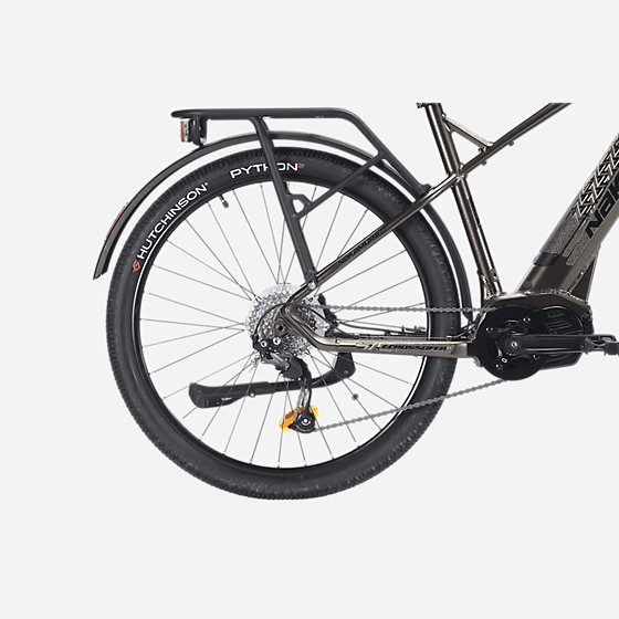 Performance : Le moteur central NAKA E-POWER MAX, avec 100 Nm de couple, vous aide à grimper toutes les côtes même les plus abruptes. La batterie de 460 Wh est intégrée dans le cadre en aluminium, pour un design épuré et un aérodynamisme accru. Le porte-bagage homologué jusqu’à 27Kg vous permet d’emmener toutes vos affaires sur n’importe quel trajet.
