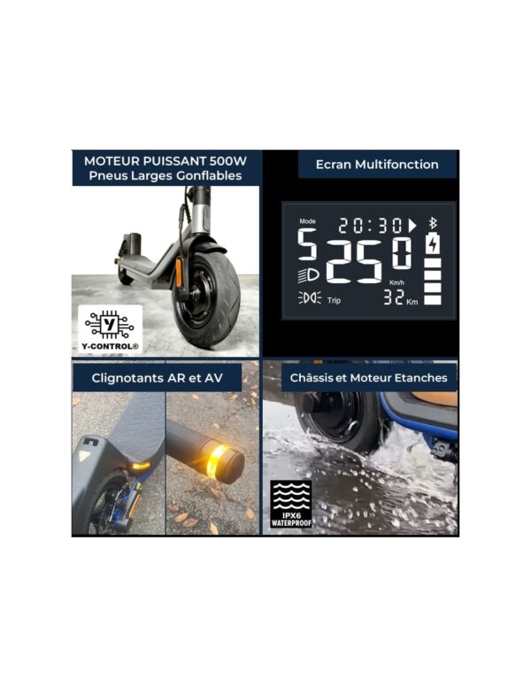Roues 10” confort larges – 500W – 10.4Ah 36V – 40 km – frein à disque et électronique